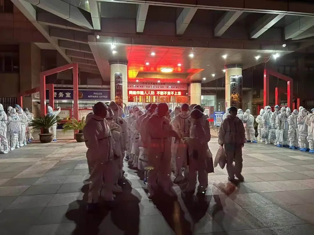 顾磊,金华市人民医院麻醉科医生,前赴封控区白龙桥镇紫金玉澜社区准备核酸采样。