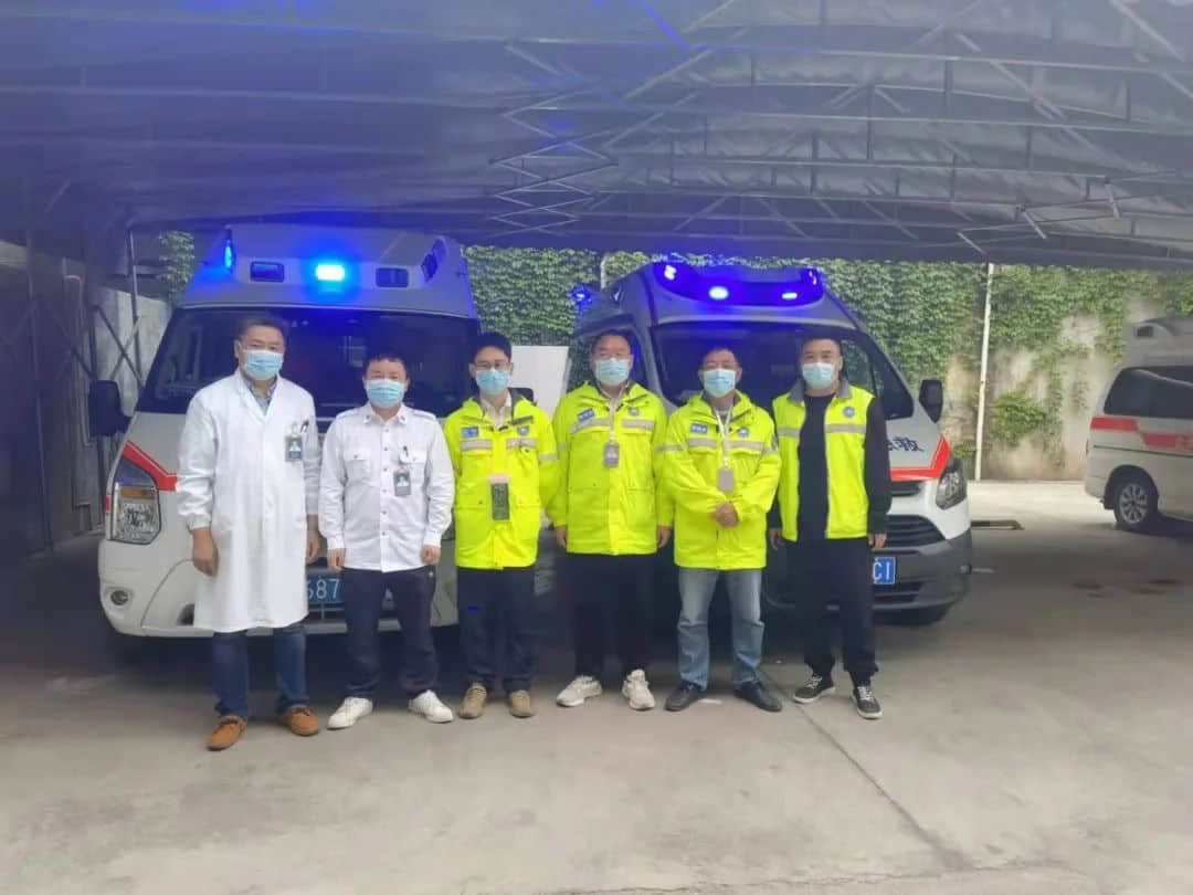 与转运确诊病例、密接、次密接任务的团队一起的陈岩。从4月16日起就睡在医院,24小时随叫随到,每天转运出车30多次,四台救护车跑趴下了一辆。