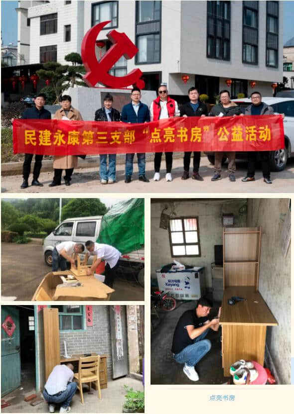 为助力乡村振兴,实现共同富裕,2021年民建金华市委会发起“点亮书房·照亮童年”公益活动。该公益活动由金华市民建企业家联合会组织实施,各基层组织和广大会员积极参与。主要选取家庭较为困难的学生家庭,上门为每一户儿童捐赠书桌、书柜、护眼台灯各一套,旨在为他们营造一个健康、整洁、合理的学习环境,让他们感受到来自社会的关爱和温暖,实现照亮童年的目的。