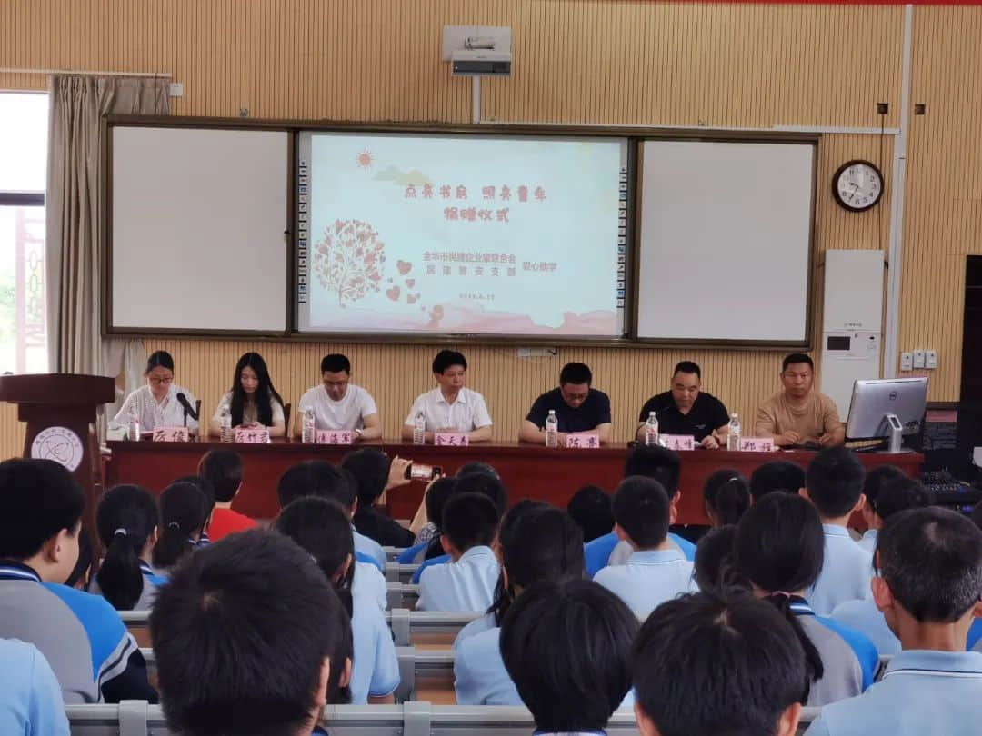 6月17日,金华市民建企业家联合会、民建磐安支部“点亮书房·照亮童年”爱心捐赠活动在磐安县新城中学举行。此次捐赠,共为新渥街道新城中学、新渥小学、深泽小学、冷水镇冷水小学的26位困难学生家庭捐赠书桌、书柜、护眼台灯各一套。仪式上,联合会常务副会长陈春锋表示,希望通过这样的活动传递民建的一份爱心,照亮孩子们的童年。磐安县政协副主席、民建磐安支部主委金天寿应邀参加活动。