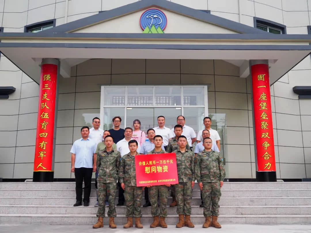 7月22日,在中国人民解放军第95个建军节来临之际,民建婺城区基层委主委丰群飞一行,走进驻金某部,开展拥军慰问活动,向部队官兵们致以节日的问候,并送上深情的祝福和慰问物资。金华市政协副主席、民建市委会主委杨坚明,市政协提案委主任方洪海、民建开发区基层委主委卢森军受邀出席活动。