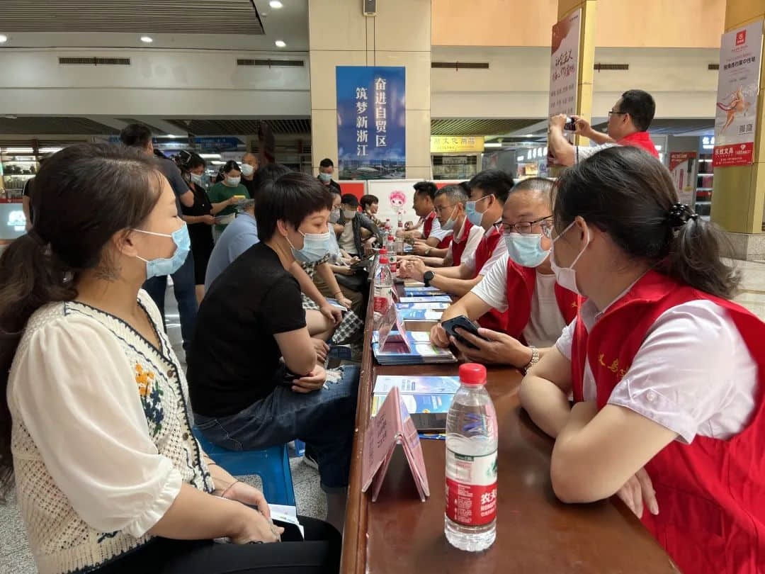 7月29日下午,民建义乌市基层委员会在国际商贸城开展“义同·服务” 公益咨询活动,基层委副主委何俊、秘书长邹华忠、委员何海舟、楼荣斌等人参加活动。