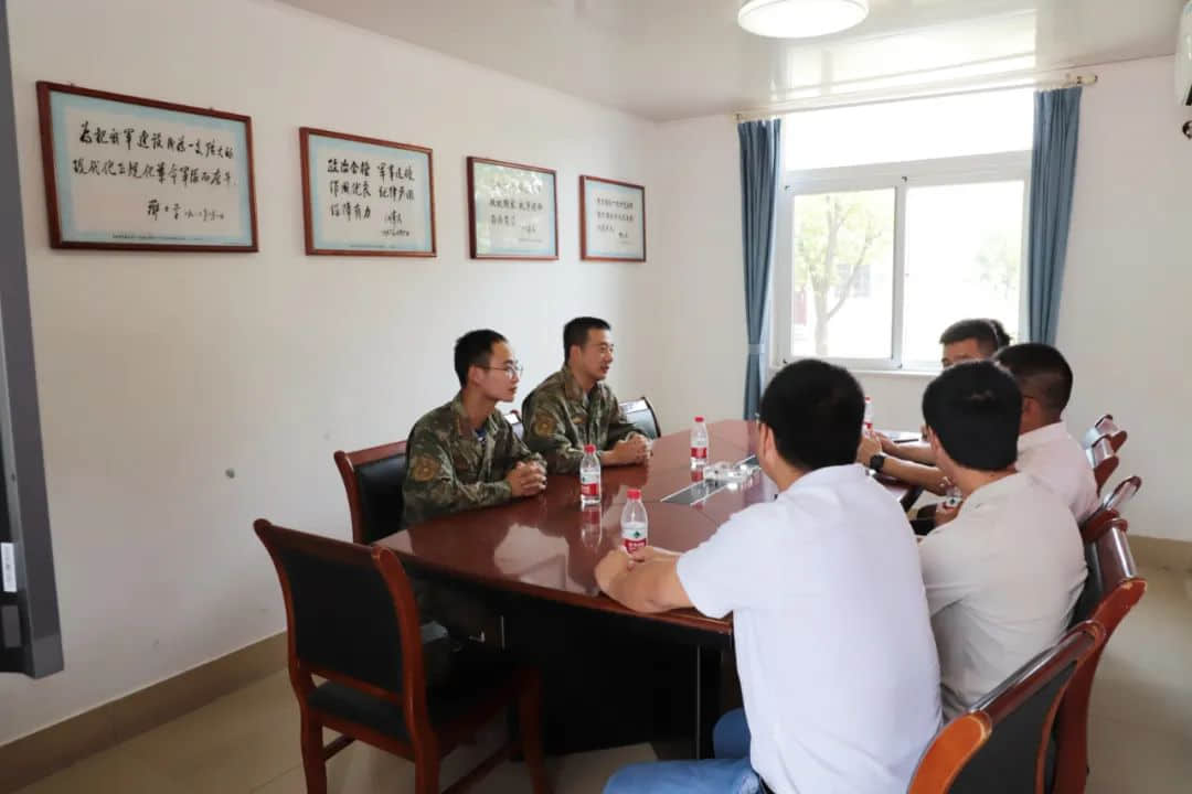驻义某部政治处副主任方平,指导员牟昔江热情接待了民建一行并交流座谈。座谈会上,俞锋向官兵介绍了民建义乌基层委的基本情况,双拥模范城标志的选址搬迁就是黄洪鸣撰写的提案。方副主任对民建义乌商贸支部的慰问表示诚挚的感谢,给战斗在一线的人民子弟兵带来了节日问候同时也带来了夏日清凉,并表示全体官兵也将牢记使命,坚持从难从严训练,以高标准高要求来圆满地完成各项保障任务。