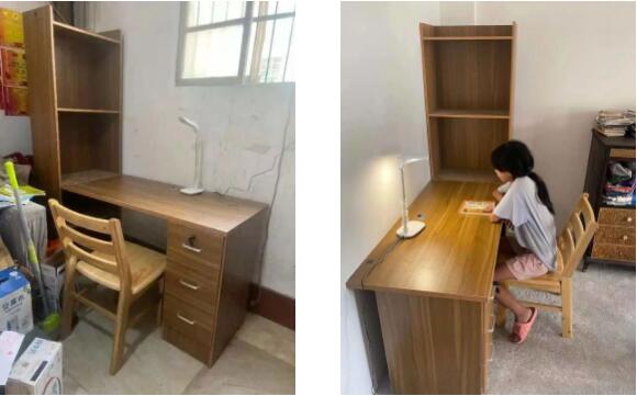 会员们亲自将精心定制的书桌、书柜和台灯送上门,为各受赠学生家庭安装。