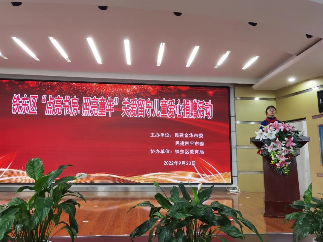 9月23日,由民建浙江省金华市委会、民建吉林省四平市委会主办,四平市铁东区教育局协办的“点亮书房·照亮童年”爱心捐赠活动在四平市第一实验小学校举行。民建四平市委副主委、市发改委副主任刘琪,民建四平市委秘书长史俐,铁东区教育局党组书记、局长刘鹏程,民建四平铁东总支主委刘伟参加此次活动。