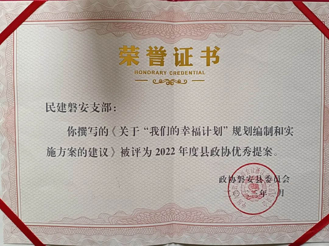 会议期间,支部和会员获得了多项荣誉:支部集体提案《关于“我们的幸福计划”规划编制和实施方案建议》被评为2022年度县政协优秀提案;厉向晖代表《关于提升基础医疗体系建设的建议》被评为2022年度县人大代表好建议;包金亮被评为2022年度优秀县政协委员;吕丽珍、张伟斌被评为2022年度县政协提案积极分子。