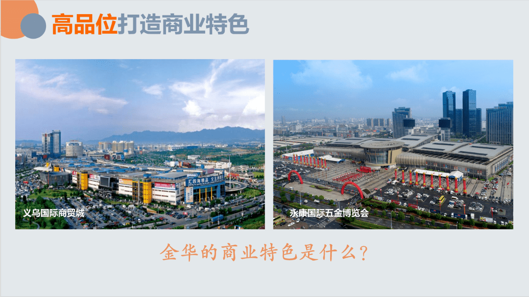 高品位打造商业特色。特色是商业的生命。九十年代,金华化纤布市场红火一时,目前金华商城仍有布料市场,带动了服装定制店铺200多家,吸引了周边地区许多追逐潮流的时尚人士。建议可以按照前店后厂的模式,打造服装定制专业街区。关于品牌展会,金华有大量的外贸代工企业,很多国际品牌都是在金华生产的。我们可以把这些同生产线、同标准、同质量的日用消费品,集中在金华展示,培育“三同”产品展会,让消费者花更少的钱,买到国际品牌同等品质的商品。有了品牌展会,更需建设一个高规格的国际会展中心,为建设国际消费中心城市提供有力支撑。