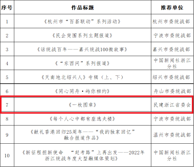 喜报!《一枚图章》获评2022年度浙江统战宣传好策划奖