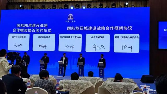 会上,金华国际陆港枢纽建设委员会揭牌成立。签署了3方面的共建合作协议。其中,有关民建企业家的有二项协议:金华市发改委和浙江省民建企业家协会、民建上海市委企业委员会签订国际枢纽城建设战略合作框架协议。金华市金投集团、武义县金投集团和杭州东方嘉富资产管理有限公司签约金武民富基金项目。