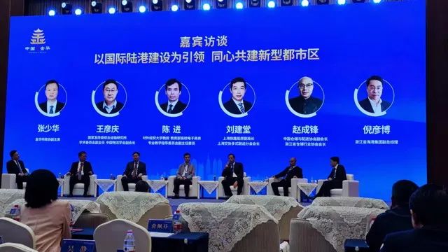 会议围绕“以国际陆港建设为引领,同心共建新型都市区”主题作了访谈。金华市政协副主席张少华认为,金华要以综合交通枢纽中心、全球贸易枢纽中心、现代化产业体系建设为支撑,进而打造贸易结算中心、大宗商品交易中心,不断提升枢纽融通力、竞争力、辐射力。国家发改委综合运输研究所学术委员会副主任、中国物流学会副会长王彦庆表示,金华“一轴两带三区多平台”的国际陆港枢纽发展格局具有独特优势,构建以港促产、以产兴城、以城育港的港产城一体化发展格局。上海铁路局原副局长、上海交协多式联运分会会长刘建堂对金华重大交通项目规划建设提出了建议。需要在铁路枢纽规划建设、节点布局等方面提档升级,补齐多式联运联通不足、支撑不足等短板。对外经贸大学教授陈进表示,金华要以数字经济为引领,推进贸易流通领域整体数字化转型,打造新业态创新、年轻人创业的新高地,进而实现枢纽的产业链、供应链、价值链“三链同构”。中国仓储与配送协会副会长、浙江省仓储行业协会会长赵成锋建议,立足金华的区块和交通优势,争创中欧班列华东集结中心、货物分拨分销中心,构建贸易平台矩阵,发展口岸经济,不断提升内陆开放枢纽中心城市能级。省海港集团副总经理倪彦博表示,将与金华携手共建金义宁波舟山港“第六港区”,提升城市商贸物流效率,构建覆盖浙中西、长江中下游及内陆腹地的服务网络。