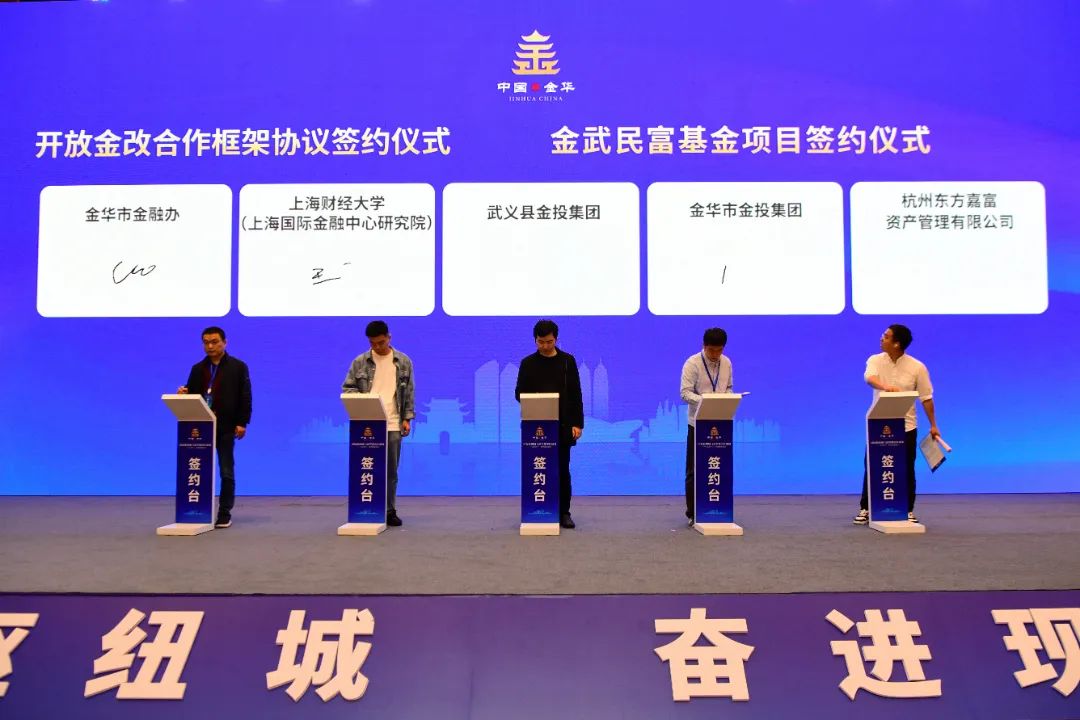 会议签署了三方面的共建合作协议。其中,有关民建企业家的有二项协议:金华市发改委和浙江省民建企业家协会、民建上海市委企业委员会签订国际枢纽城建设战略合作框架协议。金华市金投集团、武义县金投集团和杭州东方嘉富资产管理有限公司签约金武民富基金项目。