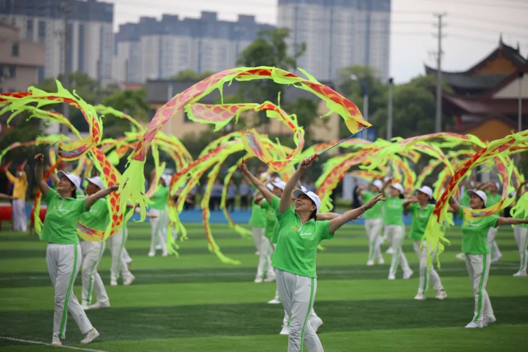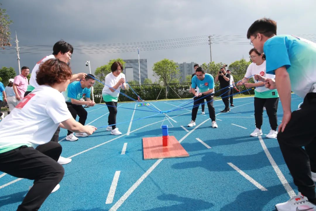 在“中华民族心手相牵亲如手足”的歌声中,60人的大鼓表演和80人手舞龙表演拉开了运动会的序幕,东阳统一战线13支代表队迈着整齐的步伐,喊着响亮的口号,逐一经过主席台接受检阅。升旗仪式结束后,随着背景音乐《我和我的祖国》响起,全体参赛人员围成了三个同心圆,体现出统一战线 “大团结、大联合”的主题,激发了统战成员的爱国热情。运动会共设置了同心向党、乘风破浪、守根“筑”魂、同舟共济等4个竞技项目。运动员们同场竞技、精诚合作,现场洋溢着欢乐团结的氛围。激烈有趣的比赛、此起彼伏的欢呼......大家用汗水和热情展现出一幅活力满满的画卷。趣味运动会让参赛人员重温了“五一口号”相关知识,在充分调动统战成员热情和积极性的同时,在拼搏进取、加油呐喊中进一步凝聚了信念和力量,激发了同心共促东阳发展的使命担当。