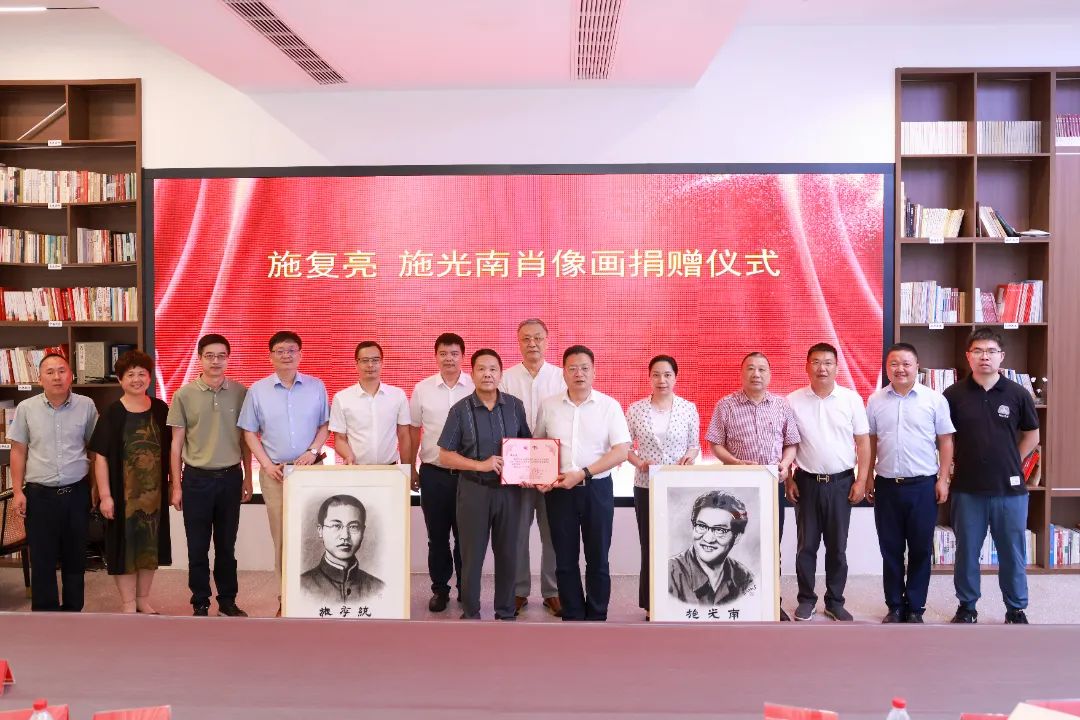 8月22日是施光南诞辰日。当天,施复亮施光南肖像画捐赠仪式暨施复亮施光南研究座谈会在浙江民建会员之家举行。市政协副主席、民建市委会主委杨坚明,上海市中共党史学会名誉副会长、监事俞敏,伟人肖像画家徐亚东,金东区政协党组书记、主席吕贤,民建市委会专职副主委王红霞,中共金华市委统战部干部和党派处处长叶峻,金东区政协秘书长陈献军,民建市委会秘书长于仁光,施复亮政治思想研究所所长张啸尘,民建企联会常务副会长李国平、卢森军、范振翔、俞锋,民建企联会副会长兼秘书长曹健参加活动。