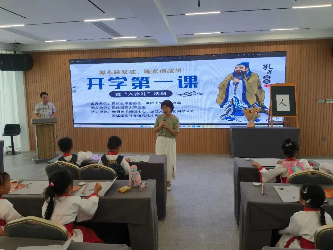 “入泮礼”后,浙师大非洲研究院副院长徐薇教授为孩子和家长们上“开学第一课”。她以成长与友谊为主题,向在场即将踏上学习之路的一年级新生们讲述了成长之路上友谊这一架桥梁的重要性,勉励孩子们不忘初心、认真学习,珍惜身边的每一份友谊。徐教授的“开学第一课”得到了现场家长的广泛认可。