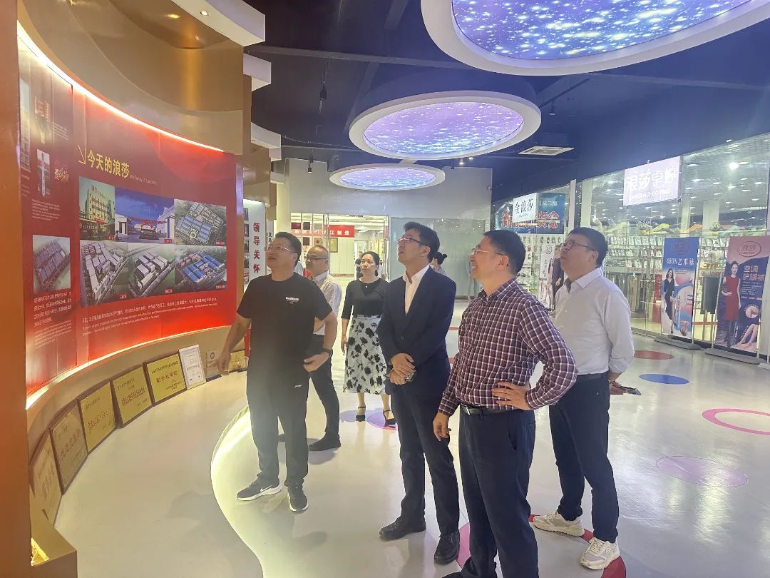 会后,盛况前往会员企业浪莎控股集团有限公司走访调研。在民建会员、浪莎控股集团有限公司董事长翁荣金的陪同下,盛况一行参观了浪莎集团的历史文化墙、产品展示厅与生产车间,感受浪莎集团独有的企业精神和企业文化,了解了浪莎集团的发展历程、管理理念和所获得的荣誉与专利。